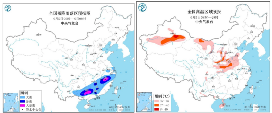 中央气象台6月5日06时继续发布暴雨黄色预警和高温黄色预警。这些地区雨水和高温天气将对当前的市场成交和下游开工造成一定影响,尤其在钢价持续拉涨之后,市场谨慎心态加剧。