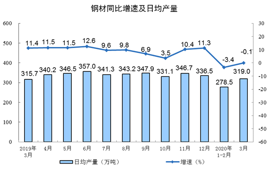 3月无论是粗钢产量还是钢材产量均呈现同比下降,但钢材产量降幅放缓,仍需留意利润回升后钢厂增产情况。