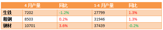 4月粗钢产量超8500万吨,同比增长0.2%