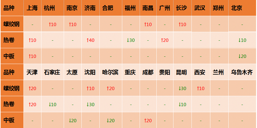 螺纹钢24个市场中8个市场上涨10-20, 20mmHRB400E平均价格3572元/吨,较上个交易日上调3元/吨;