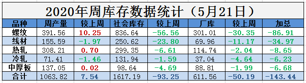 21日全国政协十三届三次会议开幕,宏观利好持续,期钢午后震荡上行,本周钢材五大品种库存继续大降143万吨,产量小幅增长7.54万吨,降库继续,但高价成交谨慎,上涨受限。
