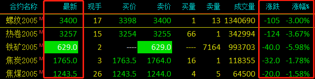受国际金融市场影响,国内期货开盘跳水,期螺大跌105收报3400,热卷大跌124收报3257,铁矿跌停,日内大跌40收报629,焦炭下跌32收报1765,焦煤下跌20收报1243.5。期货走势影响现货成交情绪,今日普遍下调。