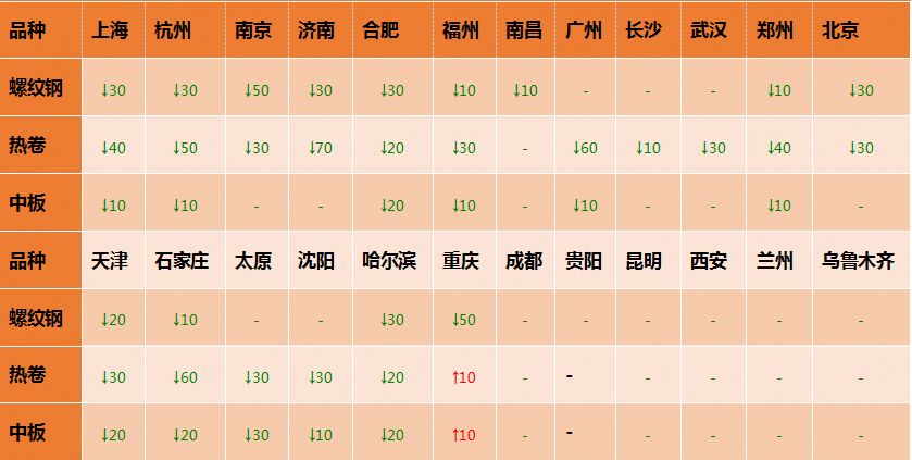 中板24个市场中11个市场下跌10-30,14-20mm普中板平均价格3690元/吨,较上个交易日下调7元/吨。