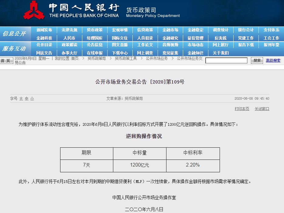 央行1200亿元 缓解压力