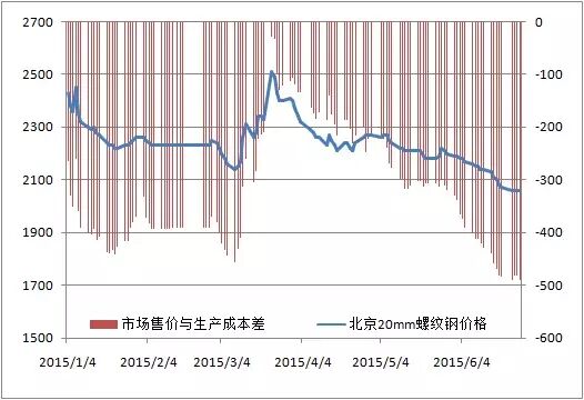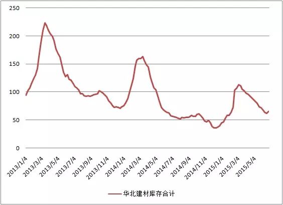 然而主要城市建筑钢材库存量为64.77万吨,较5月末71.49万吨(2015-5-29)减少6.72万吨,降幅为9%;但是同比去年同期(2014-6-27)却增加了7.52万吨,增幅13%。从而体现出现阶段华北地区供需关系依旧严峻,虽然今年钢厂减产检修力度大于往年,供给压力有所缓解,但是在持续需求低迷,现货价格连破新低的背景下,造就了库存最高点低于往年同期,现阶段库存却高于往年同期的反常现象。